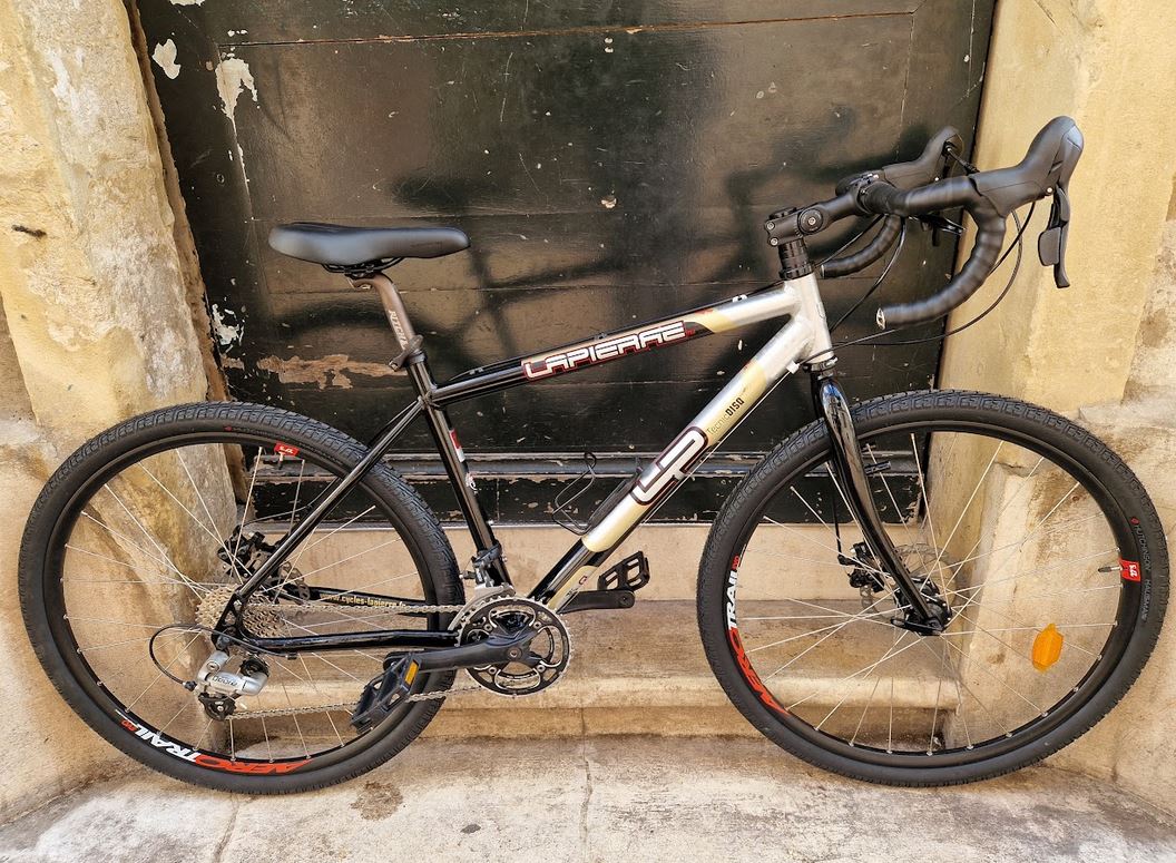 Les Vélos Meldois vous proposent à la vente ce vélo gravel / randonneuse sur une base de cadre de VTT lapierre LP techniq disc transformé dans notre atelier :